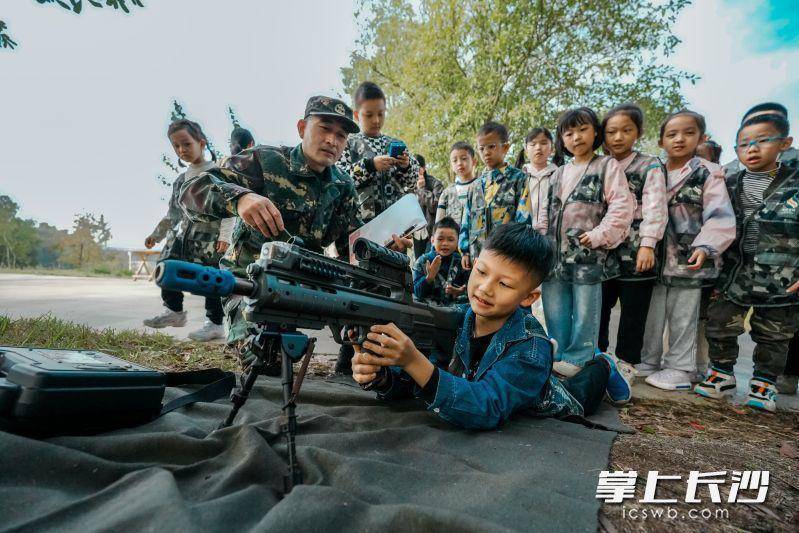 活动现场,教官首先对少年们进行基础战术指导。“肩贴枪托稳准瞄准,这是军人的责任!”激光打靶环节,10岁的彭星雅屏息凝神,指尖轻扣扳机,“命中8环!”的提示音响起,她与队友郑重击掌;7岁的单正威反复调整姿势,汗水浸湿额头,最终收获两个8环佳绩,稚嫩脸庞上满是荣光。