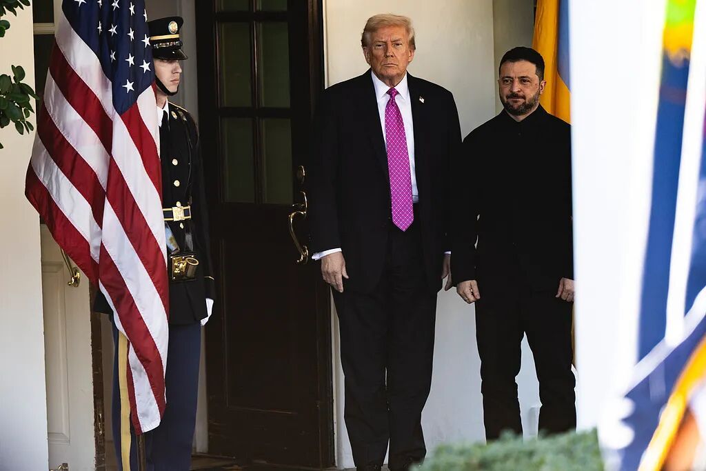 当地时间10月17日永信证券,美国总统特朗普在白宫西翼大厅入口处迎接乌克兰总统泽连斯基。图源:视觉中国